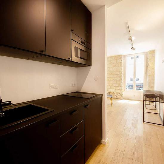 Compact one-bedroom apartment for long-term rent on Rue Charles-François Dupuis in the 3rd district of Paris. Nice light flat with original interior - a good residence option for a couple in the central part of the city. Surface - 30 square meters; big windows overlooking the street; 2nd floor of a building. The apartment consists of a living room, a bedroom, a kitchen, a bathroom. As for location, this apartment is located almost in the very center of Paris near Place de la Republique and the legendary Le Marais area; not far from Louvre...