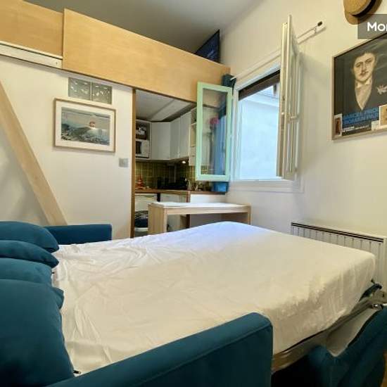 This charming studio of about 15 square metres (including a mezzanine bed) is located rue de Sévigné in the 4th arrondissement of Paris in the heart of the Marais, right next to the Place des Vosges, the Saint-Paul Saint-Louis church and just a few steps from the banks of the Seine and the Ile Saint Louis. It features a living room, a mezzanine bed, an open fitted kitchen and a bathroom. It is located on the 3rd floor without lift. The services are of quality, the decoration is neat, it offers all the comfort to accommodate 2 people. The nea...