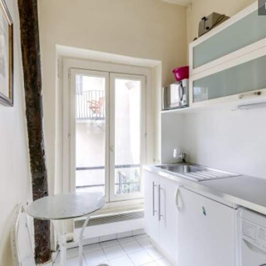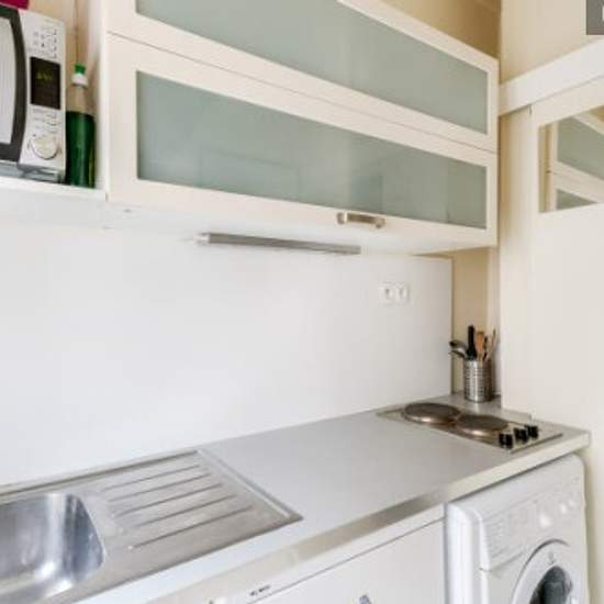 Ce très charmant studio peut accueillir deux personnes. Il est meublé d'un canapé-lit très confortable, d'une table à manger, d'un bureau, de 4 chaises, d'une grande armoire, d'une commode. La cuisine est équipée d'une table de cuisson électrique, d'un four/micro-ondes, d'un réfrigérateur, d'une machine à laver, d'une cafetière, d'une bouilloire, d'un grille-pain, de tous les ustensiles de cuisine, etc. La salle de bain est équipée d'un lavabo, d'une cabine de douche, de serviettes sèches et d'un sèche-cheveux. Il y a une salle de toilette a...