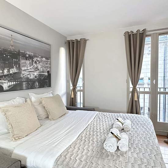 EN Immerse yourself in the magical allure of Paris, right from the comfort of our chic and spacious studio. Nestled in the charming and historic neighborhood of Le Marais, we offer you a home away from home, replete with modern luxuries and Parisian flair. Experience the City of Lights like never before! The Space: Prime Location: Strategically situated, our studio allows you to explore the bustling cafes, boutique shops, and stunning landmarks that make Le Marais one of the most sought-after districts in Paris. Fully-Equipped Kitchen: Indul...