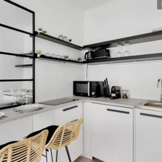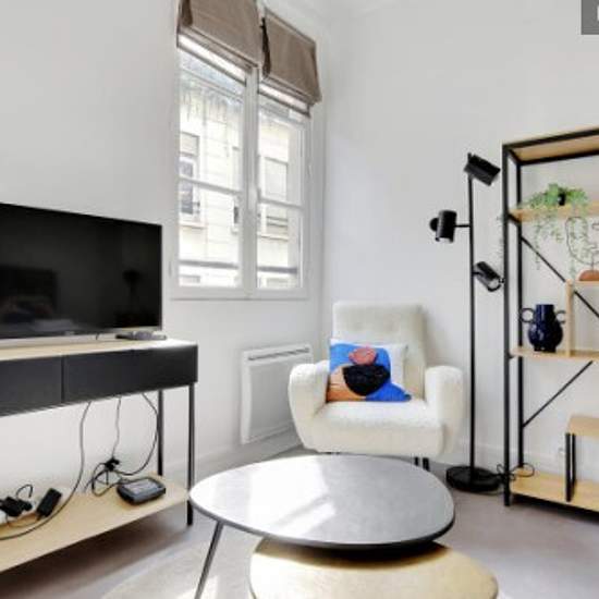 Beautiful studio, completely renovated and tastefully decorated. Located in one of the best neighborhoods of Paris: Saint-Germain-des-Prés. This very nice newly renovated studio is located on the 3rd floor (no elevator) of a typical Parisian building. In the heart of one of the capital's most sought-after districts, this 20 m² studio consists of: - A living room with a double bed - An open, fully equipped kitchen (refrigerator, induction hob, microwave, kettle, etc.) - A bathroom with shower and WC - Bed linen and towels provided - Storage s...