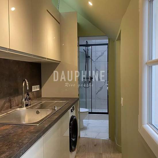 RUE CHRISTINE. The Dauphine Rive Gauche agency offers for rent (furnished) a charming studio located on the 3rd and top floor of an old building. It comprises an entry with an equipped kitchen, a living room facing due south onto a small recently renovated courtyard, and a lovely shower room with WC.