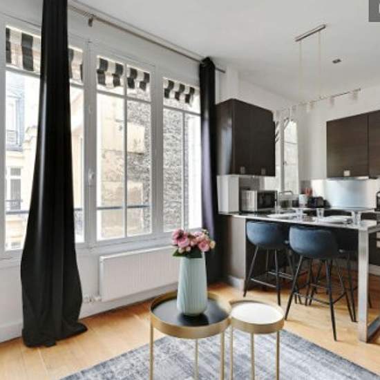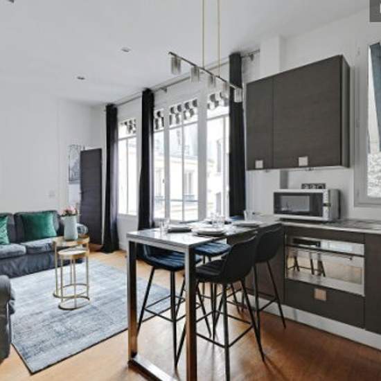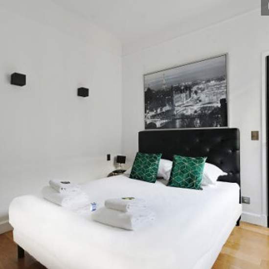 New one-bedroom apartment (T2) in the heart of Paris’s 8th arrondissement, just steps from the Champs-Élysées, the Arc de Triomphe, Place de la Concorde and Avenue Montaigne, this apartment has everything to charm you. It is a 35 m² one-bedroom apartment (T2) located on the 5th floor with elevator in a beautiful Parisian building. The accommodation consists of: - A living room with a 140 x 190 cm sofa bed and a television - A bedroom with a 160 x 200 cm double bed and a wardrobe - An open-plan fully equipped kitchen (refrigerator, oven, indu...
