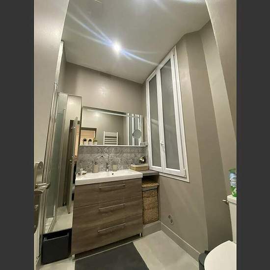 This lovely one-bedroom apartment of 40 square meters is located in the 8th Paris district. The flat is well furnished and very cozy. It's just 100 meters from Champs Elysées. In two steps you can find the Arch of Triumph, Trocadero, avenue Montaigne with its famous boutiques, Grand Palais and the President palace. The apartment is composed of a large living room, open kitchen, bedroom and bathroom with WC. It was completely renovated in 2011.