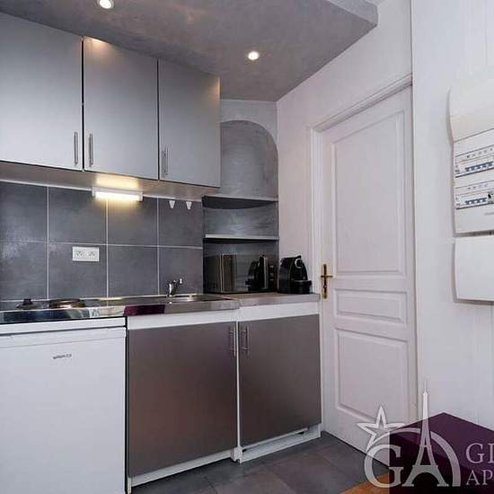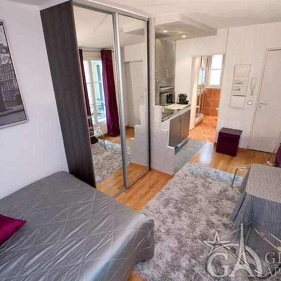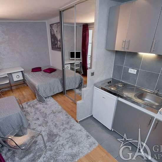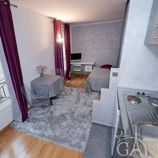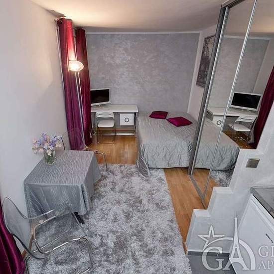 Light, stylish, modern Parisian studio apartment for rent at Rue de Ponthieu in the 8th districtof the city. It has an original interior, beautiful furniture, equipped kitchen, bathroom. Capacity - two tenants; intercom system. Good location next to the Avenue Franklin Roosevelt. The living room This cozy room offers its guests a wonderful double bed, carpet, dining table, chairs, TV, wardrobe with mirrored doors, desk, lamps. This cozy room offers its guests a wonderful double bed, carpet, dining table, chairs, TV, wardrobe with mirrored...