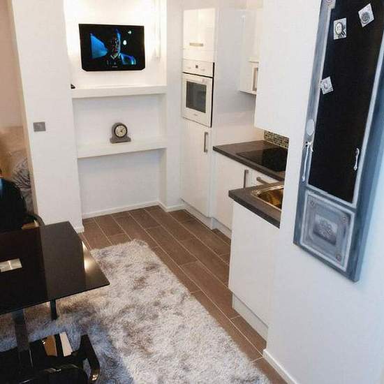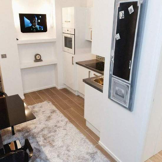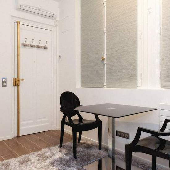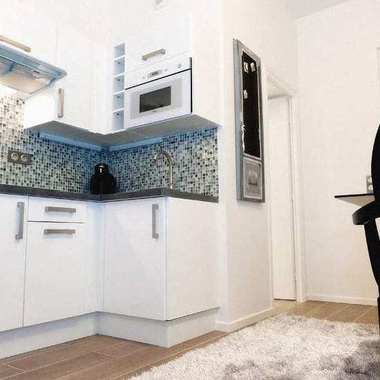 Light, modern and very comfortable Parisian studio of 35 square meters on Avenue des Champs-Élysées in the 8th district of the city. Stylish design, high-quality furniture and household appliances, the fifth floor of a building with elevator, internet. The layout of the flat includes a living room, a sleeping area, a kitchen, a bathroom. The living room offers a dinning table, chairs, a carpet, TV. Here there is an open kitchen equipped with a good set of technics and furniture, crockery and cutlery. The sleeping area has a large double b...