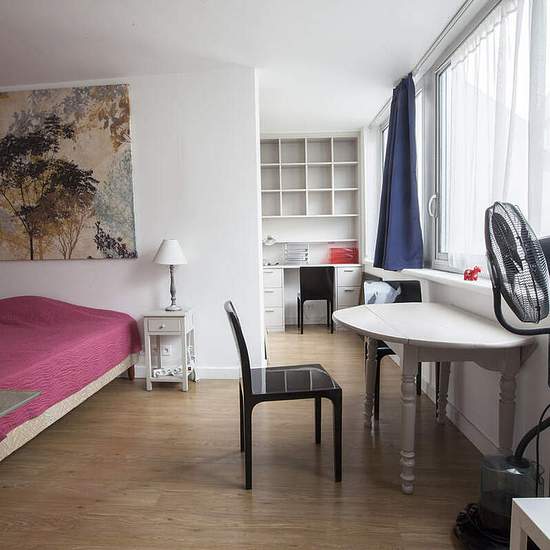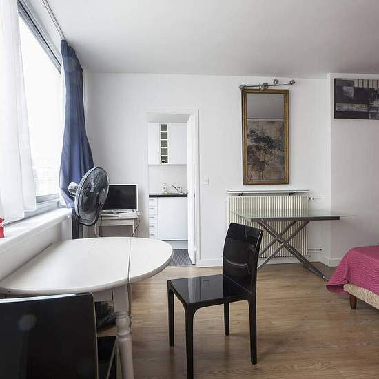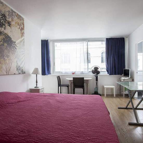 Attractive 1-bedroom apartment for rent in the 8th arrondissement of Paris on Rue du Faubourg Saint-Honoré. Cozy studio for a couple in a very good area of the French capital. Cute interior; quality furnishing; 4th floor of the building with elevator. Minimum rental period is 3 months. Living room has a double bed, tables, chairs, bedside tables, TV, a wardrobe; a work space with a desk. A separate equipped kitchen. There is a shower room, combined with a toilet. Located in a beautiful neighborhood with historic buildings from the period...
