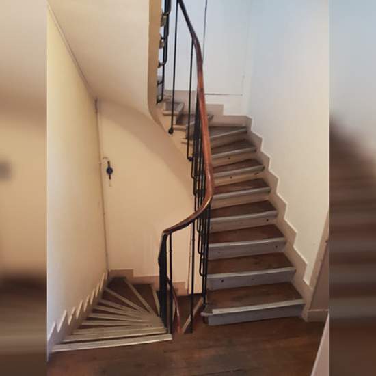 Louis Blanc metro. On the 5th floor, no elevator. 12 m² studio furnished with a bed, a wardrobe, a kitchenette with refrigerator and washing machine, and a shower room with toilet. Quiet and bright. Furnished lease. Monthly rent: €650.00 (charges included). Don't miss out! Contact: .