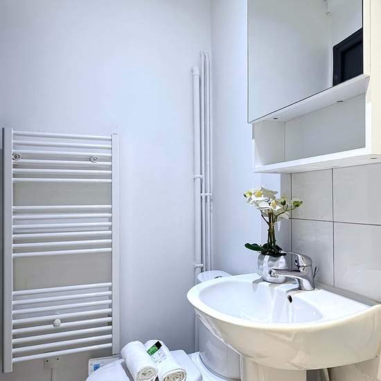 EN Experience the ideal mix of contemporary comfort and timeless Parisian elegance in this beautifully furnished studio apartment. Conveniently situated close to public transportation, the entire city is within easy reach. Take a leisurely walk to charming cafes, acclaimed restaurants, and scenic parks, ensuring a truly enchanting Parisian stay. The Space: Indulge in sophisticated comfort during your stay: Restful Sleep: Relax in a queen-size bed (160 by 200) with fresh sheets, blankets, pillows, and towels provided for your convenience. Exp...