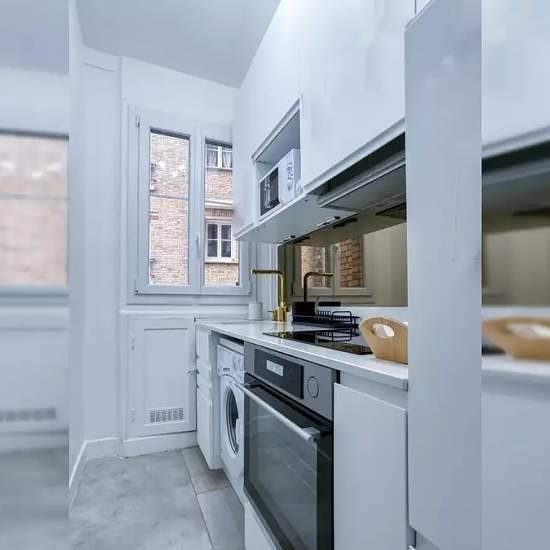 Furnished 1-bedroom apartment for rent on Saint-Lambert. The property is on the 2nd floor of a building with an elevator. The property includes TV, sofa bed, communal courtyard, and oven. Details Property type: apartment Floor: 2 Elevator: yes Number of bathrooms: 1 Wi‑Fi installed: yes