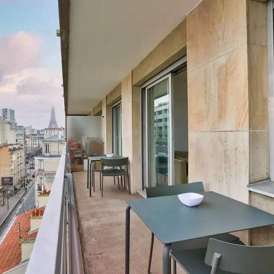 Welcome to my 40m² apartment on the 7th floor with a lift at 15th Arrondissement in Paris. It can comfortably accommodate 2 people with its bedroom with a queen bed, fully equipped kitchen, bathroom and terrasse with a view of the Eiffel Tower. Ideally located minutes from the metro, you can enjoy a charming stay in Paris. The space Welcome to my apartment! Situated on the 7th floor with a lift, this modern and tastefully decorated 40m² apartment is close to various top attractions in Paris, such as Champs de Mars! This apartment has an open...