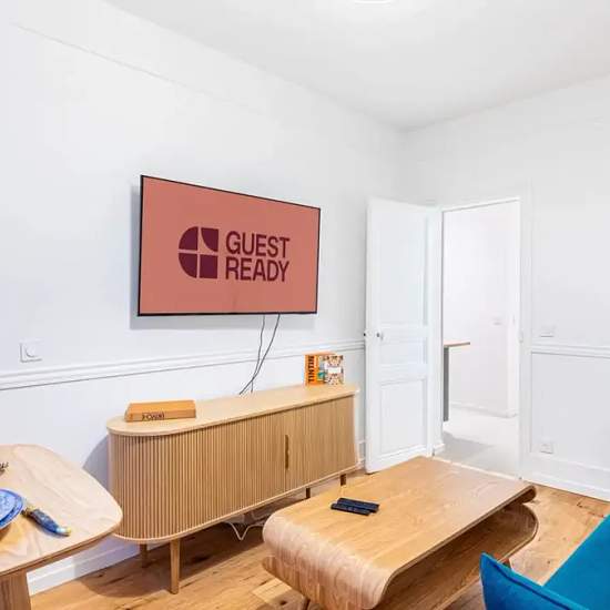 Welcome to my 40 m² apartment, located on the first floor in Paris’s 15th arrondissement. It comfortably accommodates two guests with a bedroom featuring a double bed, a fully equipped kitchen, and a bathroom. Ideally located just two minutes from the metro, it offers a peaceful stay in the heart of the City of Light. The space Welcome! The entrance to this 40 m² apartment opens onto a bright and elegantly decorated space. The living area features a comfortable sofa that converts into a double bed and a large TV. The dining area includes a t...