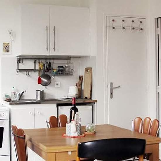 --- ENTIRE STUDIO FOR RENT (I'm going on a trip!) --- Large bright 27 m² studio at Père Lachaise. From January 11 to April 15 (move-out date flexible) Ideal for 1 person or a couple: - Separate bathroom with bathtub, toilet and washer/dryer - Equipped kitchen: 4-burner vitroceramic hob, oven, fridge, blender, kettle, toaster, pressure cooker, grater and electric mixer, etc. - Extendable dining table for 8 people - 1 double bed (+ 1 extra 120 cm mattress for guests) - 2 large double-glazed windows - Wi‑Fi + Apple TV included - Unobstructe...