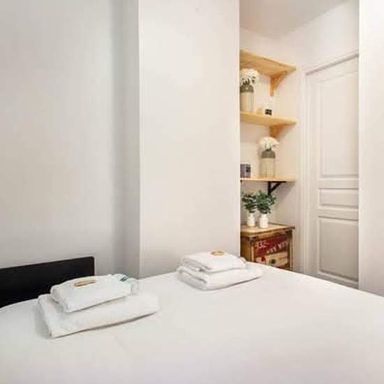 Composé de : - Un salon avec canapé lit (140x200cm) - Une cuisine équipée (réfrigérateur, plaques à induction, Micro-ondes, bouilloire) - Une chambre avec lit double (140x200cm) - Salle de bain avec douche et toilettes - Internet Haut Débit (WiFi). - Draps et serviettes de toilette fournis. - Cet appartement est situé dans le 18ème arrondissement, en plein cœur de Montmartre et au pied du sacré coeur. Le quartier regorge de restaurants, de magasins réputés, ainsi que de nombreux commerces de proximité (boulangerie, poissonnerie, bouc...
