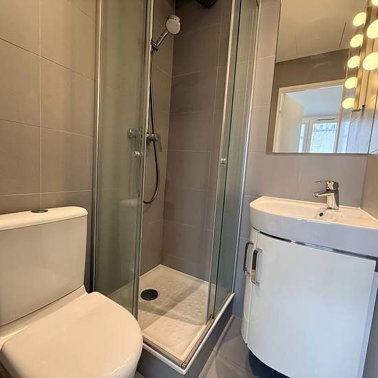 Paris 16th, 3 rue André Colledeboeuf - 12 m² STUDIO on the 8th floor of an elegant building. It comprises a main living room with a kitchenette, an entrance hall with a closet, and a shower room with a separate toilet. Individual gas heating and hot water.
