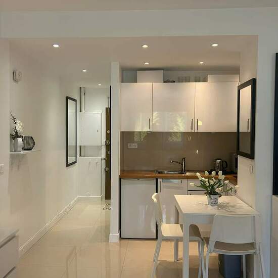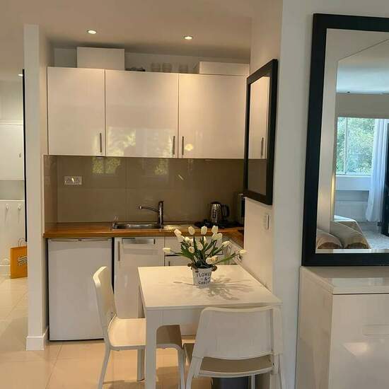 Light, stylish, modern 1-bedroom apartment Svetlana for rent on Avenue Victor-Hugo in the 16th district of Paris. It's a wonderful comfortable flat in a house with a beautiful lobby in a very good neighbourhood of the French capital. Attractive interior; excellent furnishings; a complete set of kitchen and household equipment; surface - 45 square meters; 2nd French floor of a residential building; elevator; capacity - 2 persons; a green courtyard. Layout: living room (a couch, mirrors, a TV set, an original lamp-searchlight); bedroom (a do...