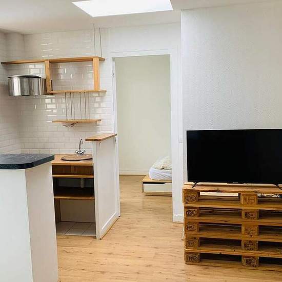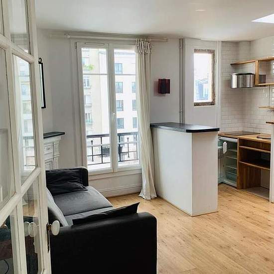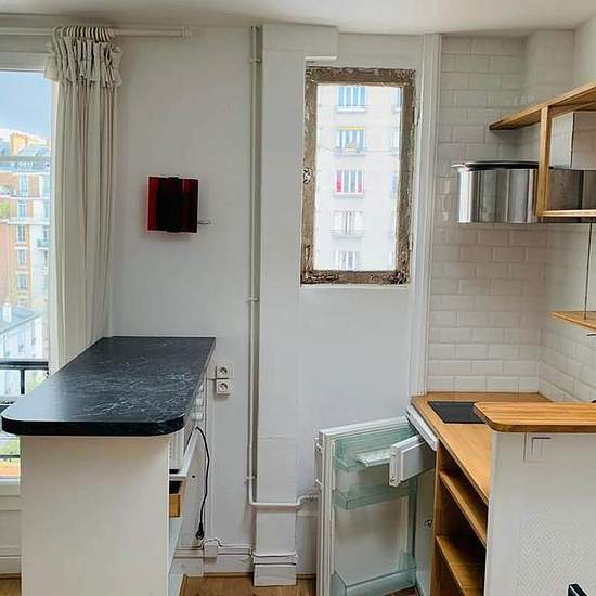 Would you like to rent an apartment in a nice neighborhood of Paris for a reasonable price? We offer you this small furnished 1-bedroom flat located on Rue Claude Terrasse in the 16th administrative district of the French capital. Interior made in light colors, 31 sq. m., 6th floor with elevator. Basic set of furniture and appliances (a refrigerator, an electric stove, a washing machine). Number of tenants - up to 3 persons. Layout: a living room, an open kitchen, a bedroom, a bathroom, a toilet. The apartment is located away from the no...