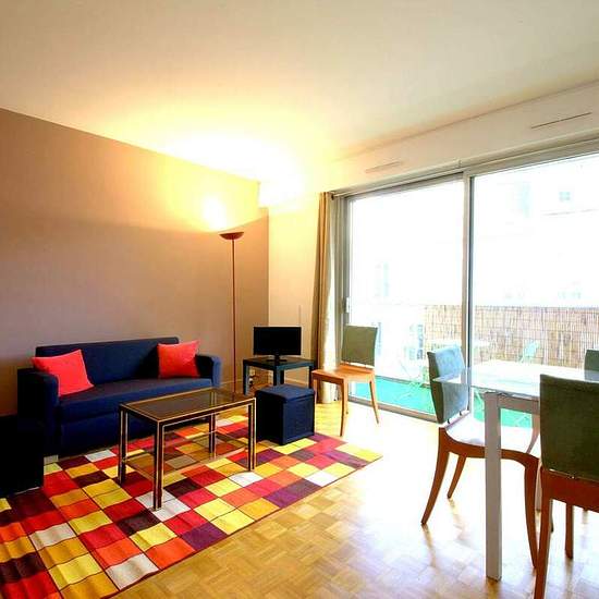 1-bedroom furnished apartment for long-term rent on Rue Vineuse in the 16th arrondissement of Paris. It's a cozy flat in a prestigious quarter of the French capital, just a short walk from Trocadero. Number of residents - up to 3 persons; surface - 42 square meters; comfortable furnishings; big windows; terrace; 5th floor (one from the top) of a building; parking. Minimum rental period - 10 months. Layout. The apartment consists of a living\dining room (sofa bed, TV, dining table, chairs, coffee table); a bedroom with a double bed; an equ...