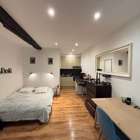 Furnished studio 28 m², bright and fully equipped, ideal for a student or single person. Living area with fitted kitchen, dining nook, sofa bed 140 x 200, storage. Lively neighborhood, close to shops, bars, restaurants and museums. Rent €650 per month, cold water included, no agency fees. Available immediately. WhatsApp contact: +2 81 22