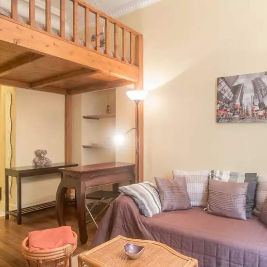 This cozy studio apartment in the 17th arrondissement is 35 m² and offers a double bed on a mezzanine level. The property is beautifully decorated and has an equipped kitchen and a tidy tiled bathroom. The apartment is located in a vibrant neighbourhood that offers all the amenities you could need during your stay. Bois de Boulogne is located nearby, and you can walk to the Arc de Triomphe and Champs-Élysées in 10 minutes. Details Property type: apartment Number of bathrooms: 1 Floor: ground Elevator: yes Floor area: 35 m² Insurance: not ...