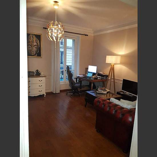 Furnished 1-room apartment for rent on Rue Descombes in the 17th arrondissement of Paris. This quite spacious flat in a typical Parisian residential building in a good neighborhood could be an attractive accommodation option for a couple for a long term stay. Area - 53 square meters; 1st French floor of a building; basic set of quality home appliances and furniture; natural wood floors; high windows. Minimum rent term - one year; number of tenants - two persons. This apartment consists of a living/dining room, a bedroom, an equipped kitch...
