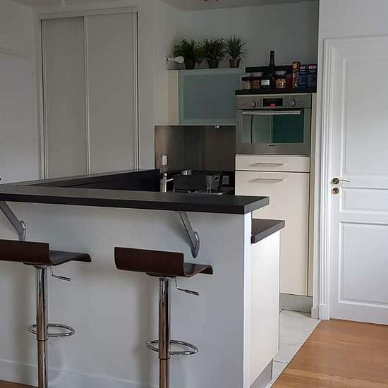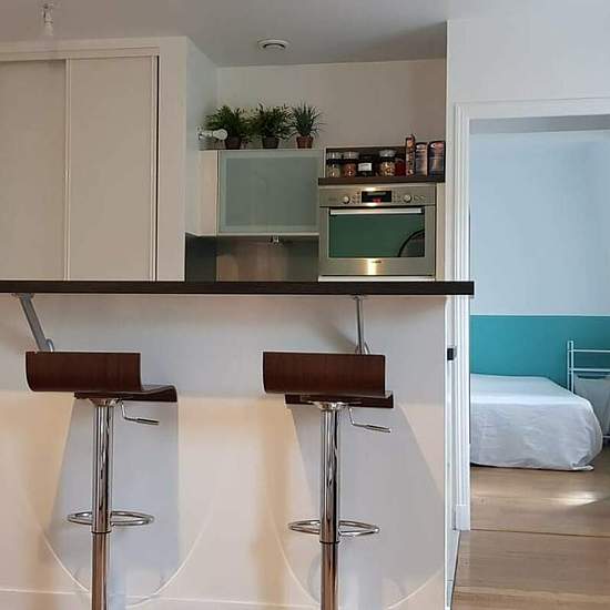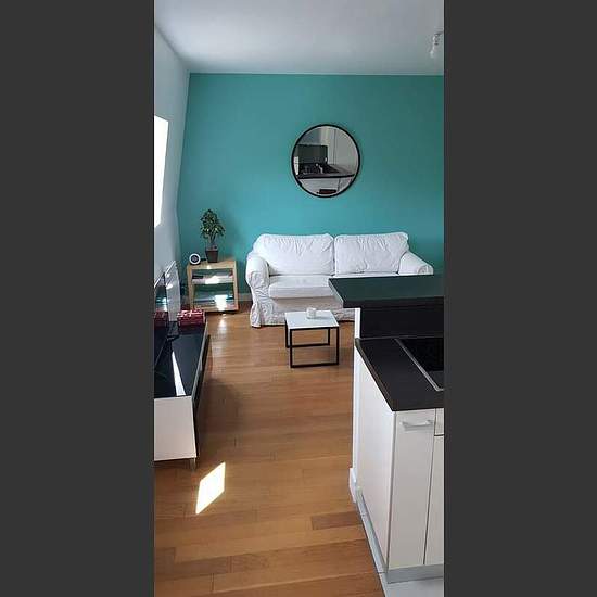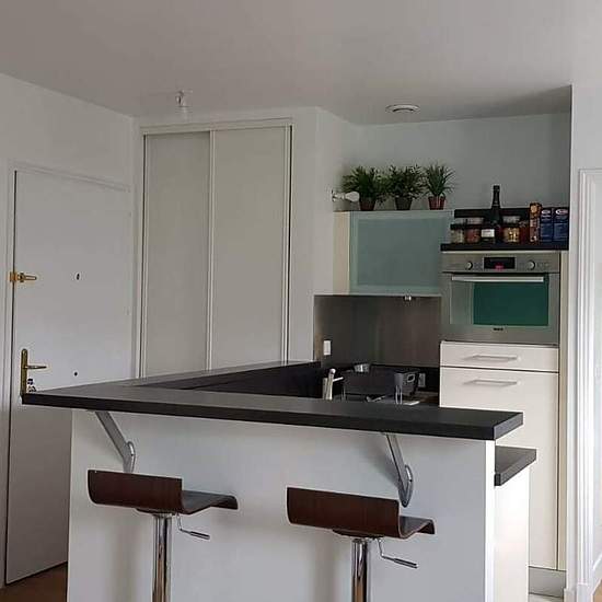 This cozy one-bedroom apartment is located on the sixth floor of a building without elevator on Rue Bremontier in the 17th arrondissement of Paris. It is ideal for a couple or a single person, and the minimum rental period is one month. The living room has a comfortable sofa where you can relax after a long day, as well as a TV and a coffee table. The open kitchen is equipped with a refrigerator, electric stove, oven and sink. The bedroom is separate and equipped with a comfortable bed to ensure a good night's sleep in a quiet atmosphere. ...