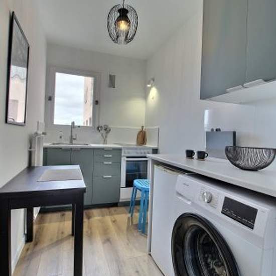 This 32.63 m² furnished studio comprises an entrance hall with storage space, a large living room, a separate kitchen and a bathroom with toilet. Located on the 6th floor of a recent building with lift access and security guard. Located in Rue Doudeauville, close to shops, boutiques and restaurants. The nearest metro station is Château Rouge (Line 4). Communal heating/hot water. Facilities: washing machine, fridge, oven, hob, television. Benefits: Quiet, lift, caretaker, refurbished. Services included in rent & charges: Water Internet Ser...