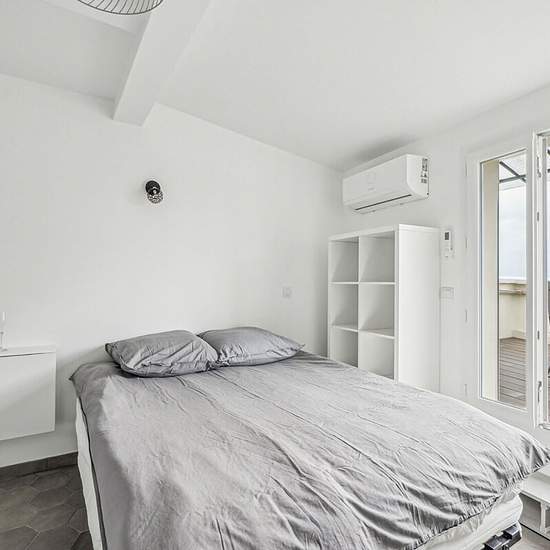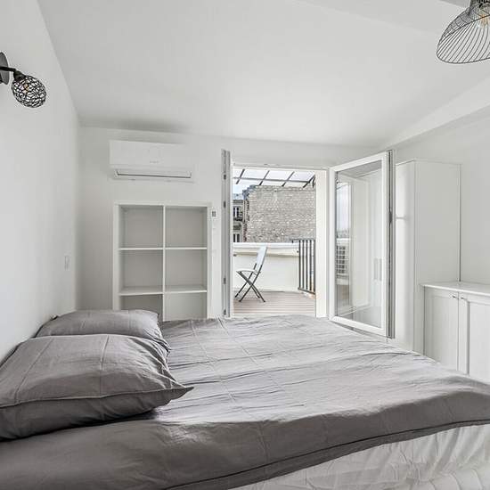 BAIL CODE CIVIL MONTMARTRE ABBESSES, meublée, disponible de suite, PLACE JEAN BAPTISTE CLEMENT, appartement studio de 15m2 avec terrasse de 15 m2 vue sur PARIS , refait à neuf composée, d'une pièce principale avec cuisine ouverte donnant sur la terrasse, d'une salle d'eau avec wc , 1200 euros charges comprises disponible au 1er décembre 2025