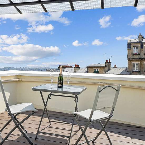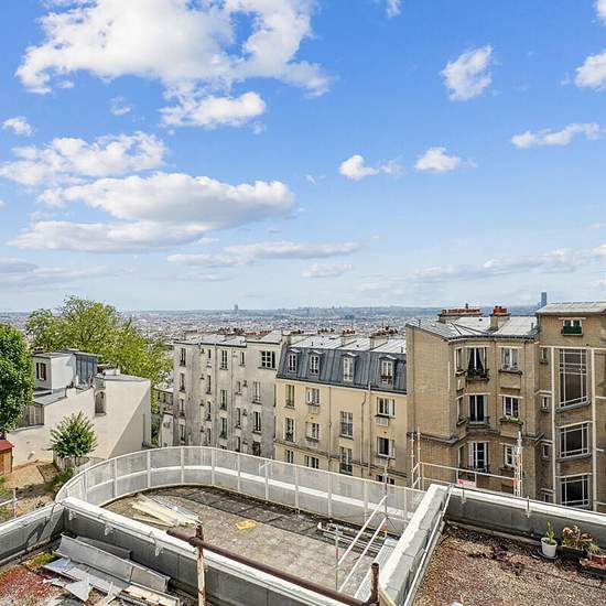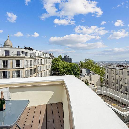 BAIL CODE CIVIL MONTMARTRE ABBESSES, meublée, disponible de suite, PLACE JEAN BAPTISTE CLEMENT, appartement studio de 15m2 avec terrasse de 15 m2 vue sur PARIS , refait à neuf composée, d'une pièce principale avec cuisine ouverte donnant sur la terrasse, d'une salle d'eau avec wc , 1200 euros charges comprises disponible au 1er décembre 2025