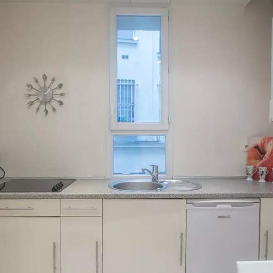 On Rue Versigny in the 18th arrondissement is this recently renovated 1-bedroom apartment available to rent. With high ceilings, stylish decor, and beautiful archways the apartment feels elegant but still welcoming and cozy. There is an eat-in kitchen that comes fully equipped and has plenty of cabinet space. The living room is fully furnished with a sofa bed, coffee table, shelving, and television. There is a spacious bedroom with a double bed and an en-suite shower. Paris’s 18th arrondissement is known for its laid-back bohemian vibe full ...