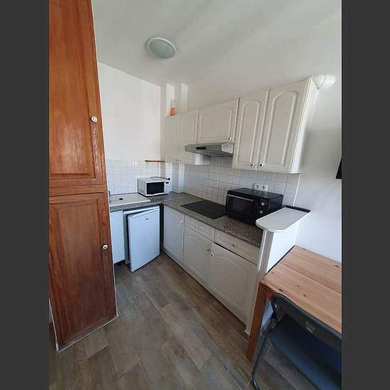 A small one-bedroom furnished apartment for rent close to the famous Paris hill of Montmartre at Rue de l'Evangile. It's not the most luxurious one in the French capital but quite cozy and inexpensive apartment. Capacity of the flat - four tenants, surface - 30 square meters, the 6th French floor of a residential building (built in 1950). Layout: living room with a sofa bed, a table and shelves; equipped open kitchen (a refrigerator, a microwave, an electric stove, a coffee maker, a kettle); bedroom with a double bed, a wardrobe, a chest o...