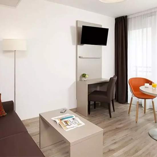 Great Area in Paris. Live in a cosy apartment with hotel services next to La Villette and the Bassin, with a lot of culture. Important: This property is one of a set. This means that there some other almost identical units in the building. So, what you see above may be slightly different to what you actually rent. Details Property type: studio apartment Elevator: yes Bed linen and towels: yes Parking: available for extra fee Wifi installed: yes Reception open: 24h Landlord policies No French Guarantor Needed For short stays the proof of inco...