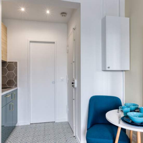 Nous Gérons vous propose la location de ce studio meublé de 13,8m² situé rue des Prairies, au cœur du quartier Gambetta (Paris 20ème). Son emplacement, dans une rue calme mais à proximité immédiate de toutes les commodités, en fait un lieu de vie idéal. L'Exclusivité du Dernier Étage Situé au 6ème et au dernier étage, ce studio offre la tranquillité et l'exclusivité des toits de Paris. L'agencement inclut une cuisine équipée et une salle d'eau avec WC. Pour votre confort, le logement est doté d'équipements complémentaires essentiels (télévis...