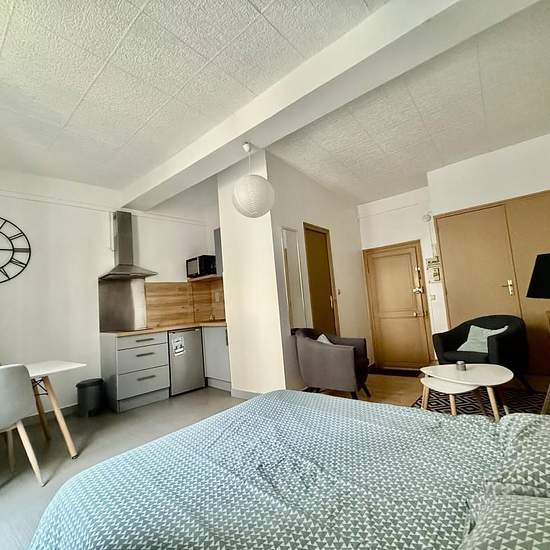 Appartement de 24 m² à louer sur Poitiers Nous mettons en location notre appartement 1 pièce joliment meublé de 24 m² situé au premier étage d'une petite copropriété sans ascenseur située à deux pas de la Place du Marché et de l'îlot des Cordelier. Il est agencé de la manière suivante : - Une entrée ouverte sur la pièce de vie avec placard intégré, un espace salon / chambre avec lit 140x200cm et cuisine entièrement équipée (plaque de cuisson électrique, hotte aspirante, micro-ondes, vaisselle et nécessaire de cuisine - Une salle d'eau dispos...