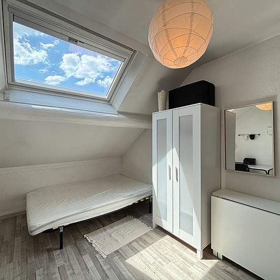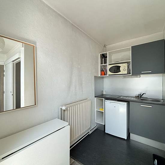 En hypercentre, au 3ème et dernier étage d'une bel immeuble ancien, rénové, un studio lumineux et meublé comprenant une pièce à vivre avec cuisine équipée et une salle de douche avec WC. Chauffage et production d'eau chaude collectifs, inclus dans les charges. Disponible le 30 décembre. Reims - 20 rue Chabaud lot 8