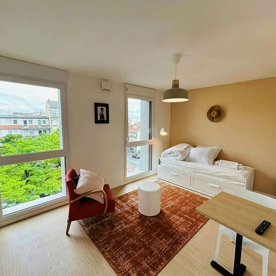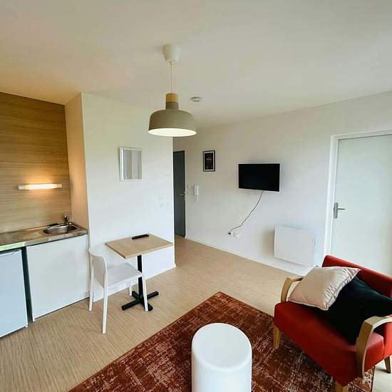 [EN] Discover a superb furnished studio in a new building, ideally located in the city center of Reims. Perfect for short, medium, or long stays, this studio offers modern comfort with all amenities included. It comprises an entrance hall with a dressing room, a living area with a kitchenette, a study, a shower room, and a separate WC. Highlights: - Central Location: In the heart of Reims. - New Building: Modern and secure. - Furnished Studio: Comfortable and ready to welcome you. - Rental Flexibility: Short, medium, and long-term stays. - A...