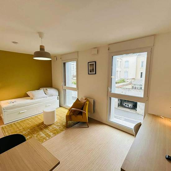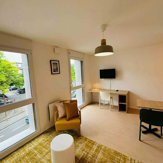 [EN] We offer a superb furnished studio in a new building, ideally located in the city center of Reims, a stone's throw from the Cathedral. Perfect for short, medium, or long stays, this studio offers modern comfort with all amenities included. It consists of a living area with a kitchenette, a desk, a dining table, a shower room, and a separate toilet. - Central Location: In the heart of Reims. - New Building: Modern and secure. - Furnished Studio: Comfortable and ready to welcome you. - Flexible Rental: Short, medium, and long term. - All ...