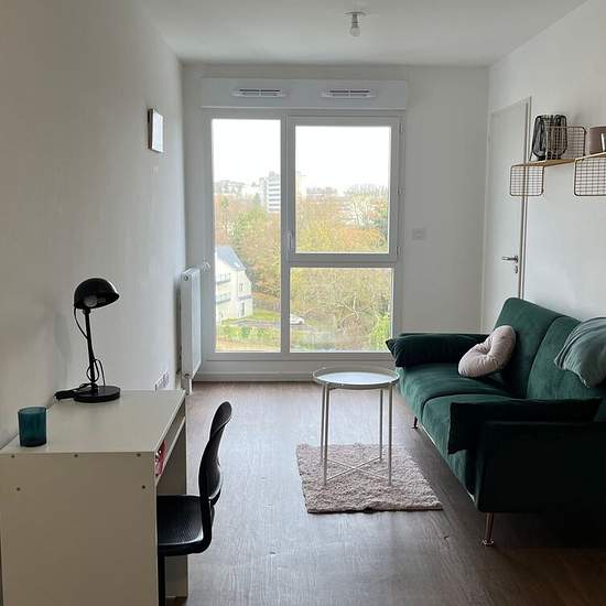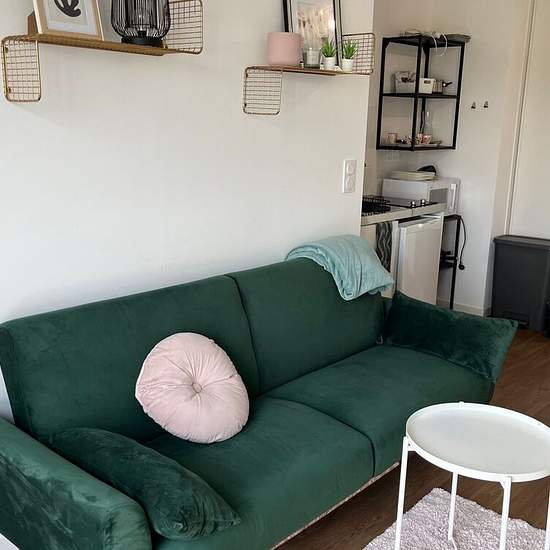 Studio à Louer de 20m² / Secteur Jeanne d'Arc-Longs Champs-Beaulieu. Votre Agence Immobilière à Rennes Orpi Aristide Briand vous propose à la location ce beau studio meublé de 20,03m² rue Jeanne Couplan. Il dispose d'un séjour avec canapé convertible, d'une kitchenette et d'une salle d'eau avec wc. Loyer : 678€ dont 78€ de charges comprenant : l'entretien des parties commune, la taxe d'ordures ménagères, le chauffage et l'eau chaude.