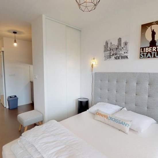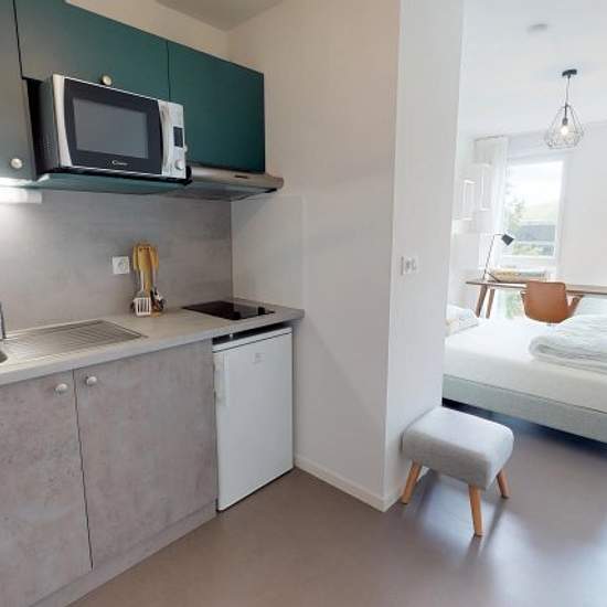 Friendly and secure, the residence has all the facilities you need for a smooth day-to-day life. Access is via a keypad, and a reception desk is open during the day to answer any questions residents may have. The 50 m² Club area is perfect for getting together with friends, and the fitness room will help you stay in shape. A computer room with broadband Internet access will be available, as well as a laundry. This T1 flat has : - a sleeping area (120cm bed) + workspace - a fully-equipped kitchen - a private bathroom and WC Services included ...