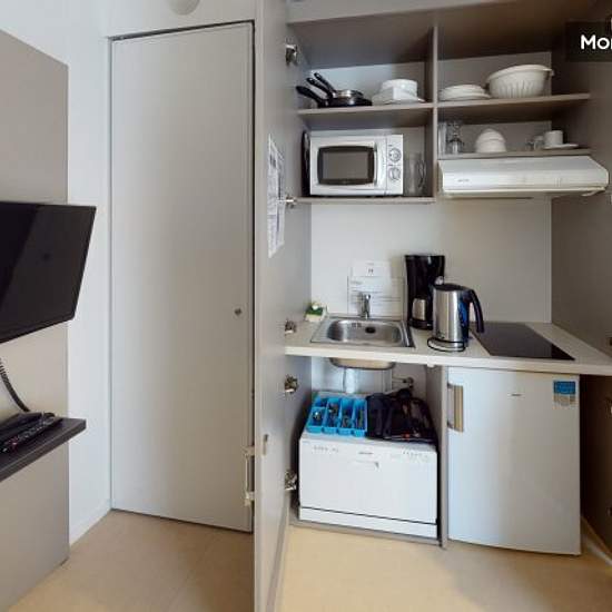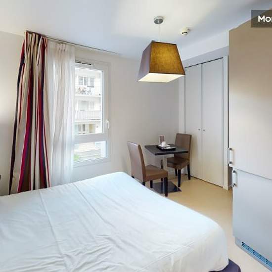 Fully equipped and furnished studio, located 10 mn walk from the historical center of Rennes and close to the business center Le Mabilay. The TGV train station is 15 mn away by bus and the Rennes Airport Exhibition Centre is 15 mn away. In the case of a seasonal rental, in addition to the monthly rent, a visitor's tax of an amount that varies per night and per person will be payable directly to the residence. Services included in rent & charges: Water Electricity Internet The security deposit of 950 € must be paid, before the keys are han...