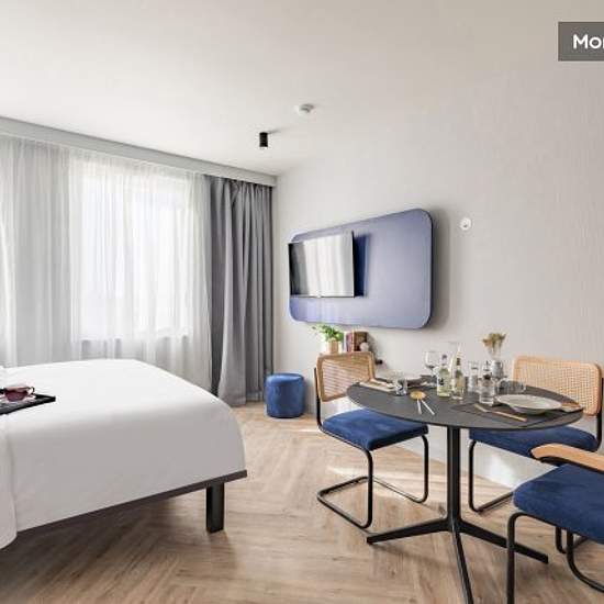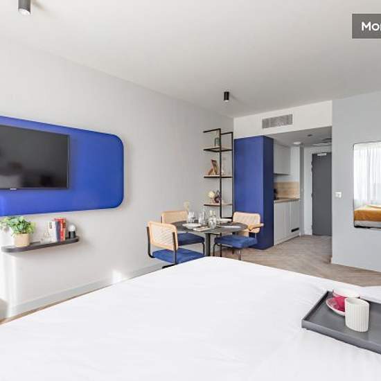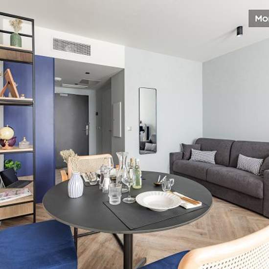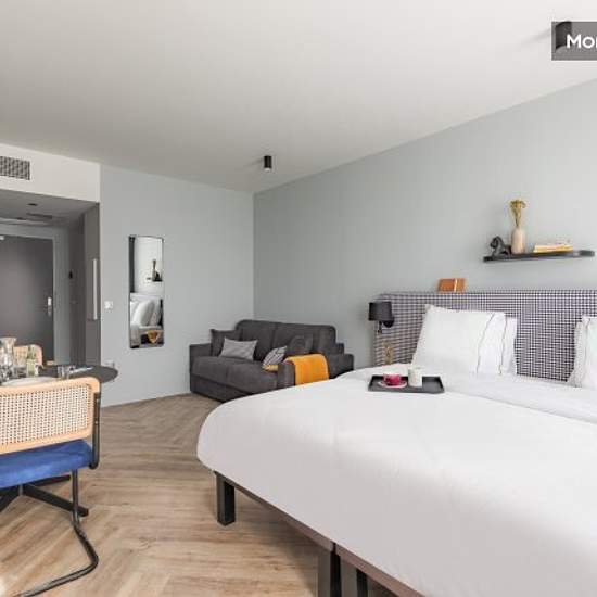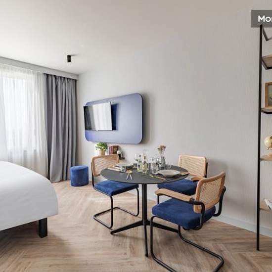 The residence is located in the hotel zone, just 3 km from Roissy Charles de Gaulle airport, and offers fully-equipped studios with hotel service. HIGHLIGHTS + 3 km from Paris Roissy-Charles de Gaulle airport + 3 km from the Villepinte Exhibition Centre + 7 km from Le Bourget airport + 4 seminar rooms (106 m2) EQUIPMENT - Quality bedding - Italian shower, hairdryer, backlit magnifying mirror - Fully equipped kitchen area, capsule coffee machine - Work area - 43-inch 4K UHD TV with Chromecast technology - 100% fibre-optic broadband internet a...