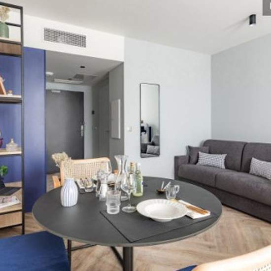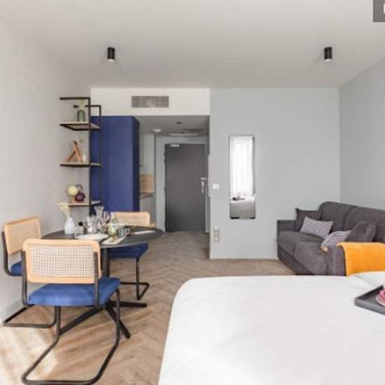 La résidence est située dans la zone hôtelière, à seulement 3 km de l'aéroport Roissy Charles de Gaulle et propose des studios tout équipés avec service hôtelier. POINTS FORTS + À 3 km de l'aéroport Paris Roissy- Charles de Gaulle + À 3 km du Parc des Expositions de Villepinte + À 7 km de l'aéroport du Bourget + 4 salles d'espace séminaire (106 m2) ÉQUIPEMENTS • Literie de qualité • Douche italienne, sèche-cheveux, miroir rétroéclairé et grossissant • Espace cuisine équipée, machine à café à capsules • Espace de travail • TV 4K UHD 43 pouces...