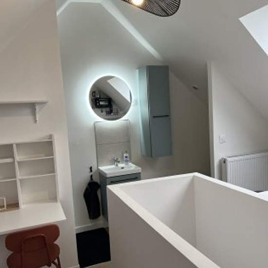 Welcome to this charming studio apartment ideally located in Roubaix on the 2nd floor of a small building. It comprises a sleeping area, a kitchenette and a shower room. → Double bed and premium bedding → Metro, parking, tram and bus nearby → Office area & wifi ideal for teleworking You can get to the centre of Lille and its train stations (Lille Europe and Lille Flandres) in just 20 minutes! Free parking is available right in front of the building. The accommodation will be carefully prepared for your arrival: professional cleaning service....
