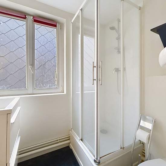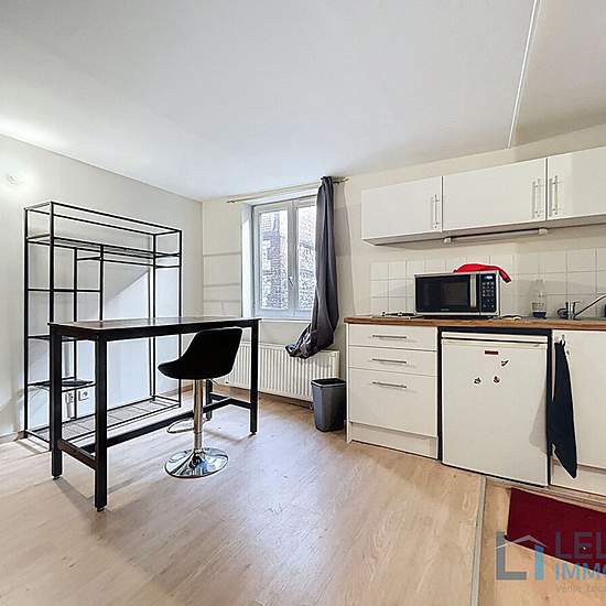 Location - Rouen Vieux-Marché Dans un bel immeuble idéalement situé à proximité de la place du Vieux-Marché, charmant appartement 1 pièce comprenant : Un séjour parqueté, lumineux et agréable, un espace cuisine aménagée et équipée (plaque vitrocéramique, réfrigérateur, hotte aspirante, meubles hauts et bas), une salle d'eau avec douche, lavabo et WC. Chauffage individuel électrique. Appartement au calme, donnant sur cour intérieure.