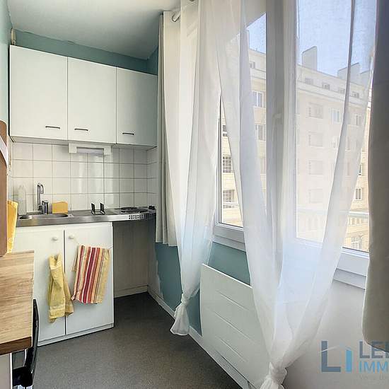 Rouen - cathedrale dans résidence sécurisée - a 1min à pied du teor (ligne t1-t2-t3) un studio meublé comprenant : entrée, séjour avec placard, espace cuisine aménagée et équipée (meubles de rangement, plaques de cuisson, réfrigérateur), salle d'eau (douche, lavabo et wc). Chauffage individuel électrique - eau froide individuelle. * assurance habitation à 8.42 euros / mois.