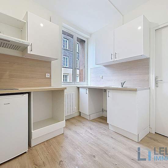 Appartement non meublé - Quartier Saint-Marc / Aître Saint-Maclou Appartement entièrement refait à neuf, situé dans le quartier recherché de Saint-Marc, en face de l'Aître Saint-Maclou. Il comprend : Un séjour avec cheminée décorative et placards, une cuisine séparée aménagée et équipée (meubles hauts et bas, évier, plaque électrique, réfrigérateur, branchement machine à laver), une salle d'eau (douche, meuble vasque et WC). Chauffage individuel électrique. Quartier calme et prisé, proche des commerces, restaurants et transports. Disponible ...