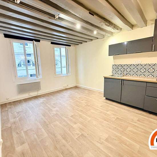 ENTRE LA PLACE HENRI IV ET LA PLACE DU VIEUX MARCHE F1 de 18,02 m² au 1er étage, comprenant : une pièce de vie avec coin cuisine aménagée et équipée (plaques de cuisson, réfrigérateur), salle de douches. Chauffage individuel électrique. Disponible dès maintenant.