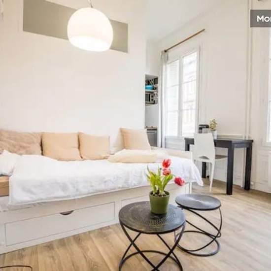 Fully renovated furnished studio, a few minutes walk from the Rue Verte train station & Rouen city center. Well served by public transport & parking spaces in the street. Very bright, view on a small private yard. The studio is equipped with a kitchen with electric plates, microwave/oven & refrigerator. In the living room there is a bed that can be folded out to make a double bed if needed. A closet with hanging space and shelves, as well as other storage space, are available. The bathroom, also brand new, has a bathtub, toilet, sink, towel ...