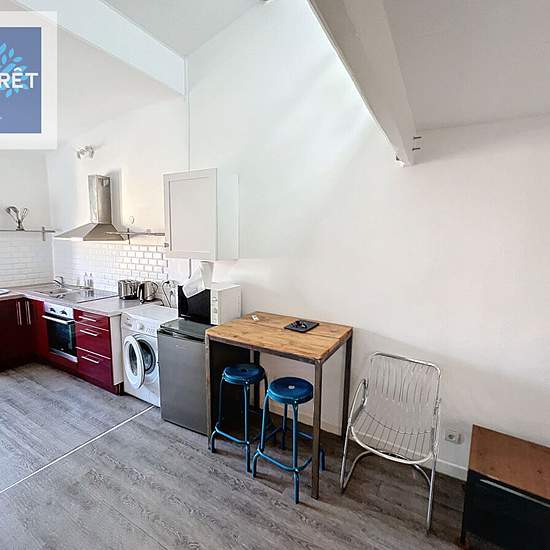 Salon de provence - en centre ville dans une rue à sens unique un studio de 22 m² + mezzanine loué meublé comprenant une pièce de vie, une cuisine équipée et aménagée, une salle d'eau avec wc, à l'étage une chambre. Libre de suite. Classe énergie : e. Loyer : 555 euros + 30 euros de charges par mois. Dg : 1110 euros. Fa : 284 euros (part locataire) laforet immobilier : .