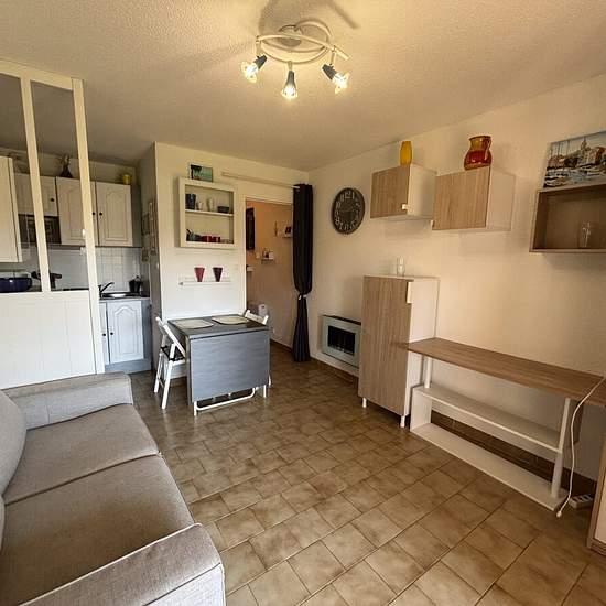 Furnished T1 - Sanary The Air Terre Mer real estate agency offers this furnished T1 for rent in a residence from the 1980s. It consists of an entrance opening onto a sleeping area, a shower room with WC, a main room with a kitchenette area and a balcony. Located to the east of the town of Sanary in a cul-de-sac, the residence is peaceful. Easily accessible, the highway is one minute away. Ideal for a young professional or a retiree. Parking available to rent separately. If you are interested in this property, submit your application on ou...